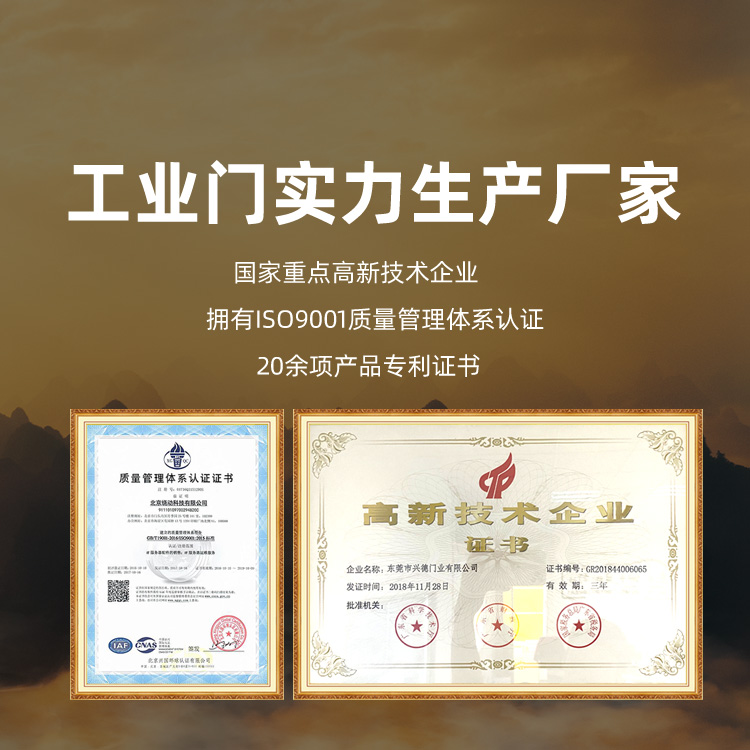 東莞市興德門業(yè)有限公司是以生產(chǎn)滾筒式快速軟簾門、快速卷簾門、快速門、快速自動門、高速門、高速卷門、高速卷 簾門、自動門、快速堆積門、金屬自由門、工業(yè)卷簾門、滑升門、pvc透明軟門簾、磁吸門簾、推拉磁鐵門簾、透明軟板、防塵防靜電工程等方面的開發(fā)、設(shè)計與生產(chǎn)、銷售于一體的高新技術(shù)企業(yè),公司實力雄厚,專 注于產(chǎn)品十年余載,產(chǎn)品暢銷各地。